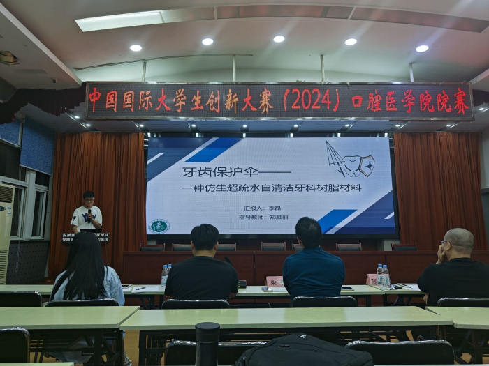 本次比赛共有12支队伍进行路演汇报,参赛项目涵盖口腔医学的多个方面,包括新型种植体材料研究、牙周损伤修复材料和智能化口腔诊疗等。各参赛队伍就项目背景、市场分析、商业模式、营销策略、风险控制和预期成果等方面进行深入介绍。评委们充分肯定了DB电竞参赛选手的创意和努力,并就项目的科学性、创新性和转化可行性等提出建设性意见和改进方案,为项目的优化指明方向。此次比赛搭建了一个促进学术交流、激发创新活力的舞台,充分展示了DB电竞学生 “敢闯敢创“的创新精神。