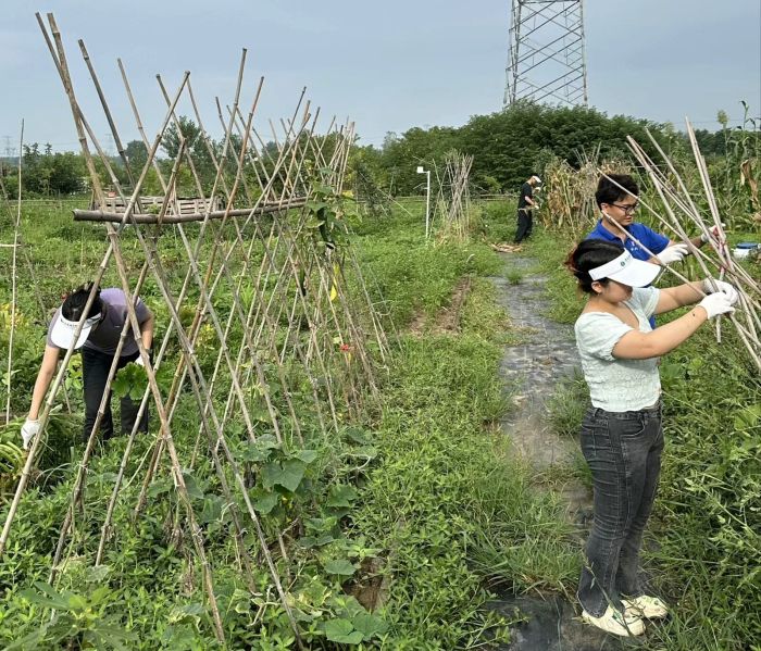 在身体力行志愿服务当地村民的同时,在当地农场主的悉心指导下,实践团还走进田间地头,分成若干小组,承担起不同的农活,与泥土和作物亲密接触。炎炎烈日没有消减大家的劳动热情,更让他们在参与除草、采摘瓜果等农事活动中,深刻体会了劳动的艰辛与收获的喜悦。