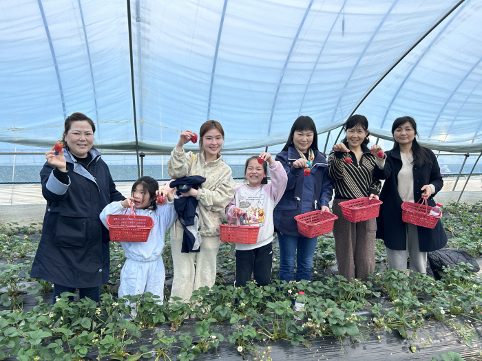 阳光明媚,春风拂面。大棚里,一簇簇绿叶托着的红色果实,像一个个小灯笼,一阵阵甜蜜的草莓香扑面袭来,叫人心迷。明媚的春光中,女职工和孩子们互相配合,共同协作,大家一边采摘草莓,一边和孩子们分享着草莓种植的知识,感受采摘的乐趣。看着自己采摘的新鲜草莓,孩子们的脸上洋溢着满足的笑容,女职工们也感受到了家庭的温暖和幸福。大家纷纷表示:“摘草莓活动,既增加了团队的互动,放松了身心,也促进亲子的沟通,我们收获了快乐,凝聚了力量,也感受到了生活的幸福。”