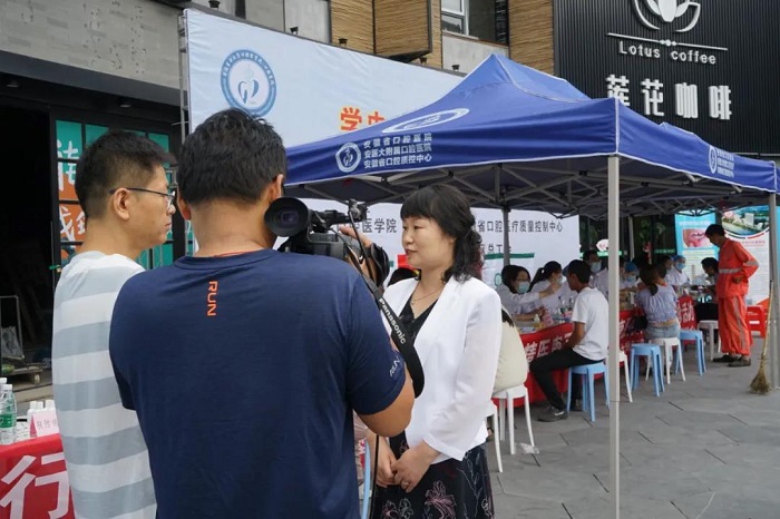 校纪委书记黄新美到场指导,看望了现场义诊人员,对他们的辛苦工作表示慰问。安徽公共频道、江淮晨报记者前来采访报道,院党委书记王润玲、院长何家才简要介绍了活动的意义和概况。