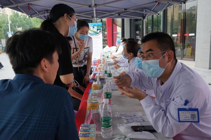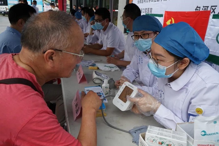 为推动深入学习贯彻习近平总书记在党史学习教育动员大会上的重要讲话精神,落实DB电竞 党委关于党史学习教育的决策部署,切实履行公立医院的社会责任,引导广大医护员工“学党史、悟思想、办实事、开新局”,进一步提升医院的良好形象,深入推进从“学”到“做”,把党史学习教育的成果转化到为民服务具体的实践活动中,方便群众在家门口看病就医,切实增强人民群众就医的获得感和幸福感,6月26日,DB电竞联合包河区工委、合肥市滨投集团,在包河区罍街(卫岗莲花小区东门斜对面)举行了“‘学史力行 精医康民’----安医健康服务体系大型义诊活动”。