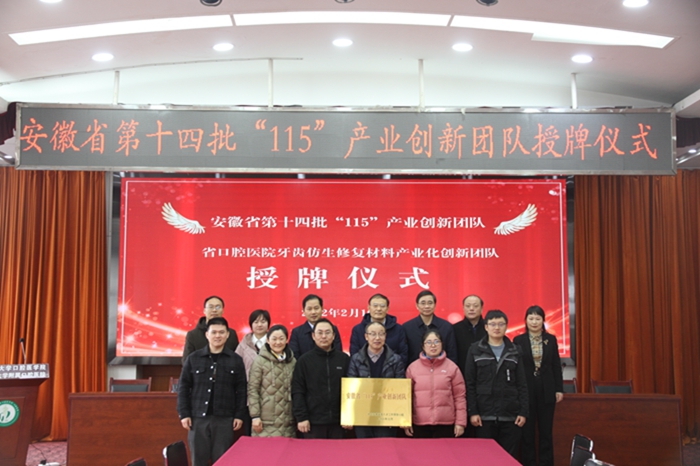 2月15日上午,省委组织部人才工作处一行前往DB电竞,为DB电竞入选省第十四批“115”产业创新团队的“牙齿仿生修复材料产业化创新团队”授牌。仪式后召开了高层次人才意见建议座谈会。副校长余永强出席授牌仪式并讲话。团队由6人组成,院直党支部李向阳老师、郑顺丽老师、邱华老师参与组队。