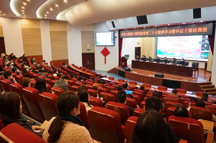 12月7日晚,DB电竞在校图书馆第一报告厅举行党的二十大精神学习暨中层干部培训班开班式。院长何家才线下出席仪式并作动员讲话,上海交通大学医DB电竞 继续教育DB电竞 副院长浦川海在线出席并致辞,院党委副书记陈然主持会议。上海交通大学医DB电竞 附属仁济医院人力资源部处长李瑾受邀作了题为《公立医院人才培养与学科建设》的首场培训报告。