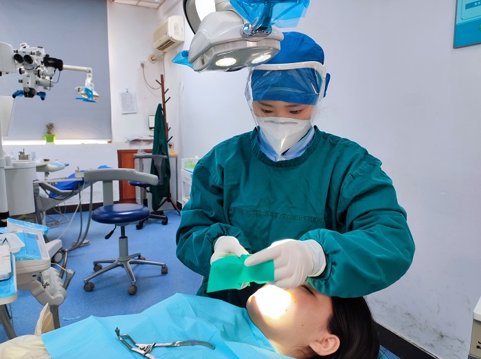 当时接诊的患者大部分是牙疼了几天,冒着风险过来就诊的。其中有一位患者去了数家公立医院口腔科,因为各种原因没能得到处理,打车时偶然得知DB电竞依然开诊,就立即来到了DB电竞就诊。郑桂婷对其进行耐心解释和精心治疗,患者的病情也很快得到了缓解。还有一位患者上午在其他科室拔牙,因未严格遵照医嘱,导致创口出血,下午过来发现处置医生也发烧了,不得已转来牙体科室。郑桂婷迅速给他进行了止血,消除了患者的恐惧。“幸好有你们在!”是患者对她最大的信任。“疫情以来,我们在诊疗中从不敢懈怠,全力帮助患者解决问题,这是我们义不容辞的责任。”郑桂婷说。