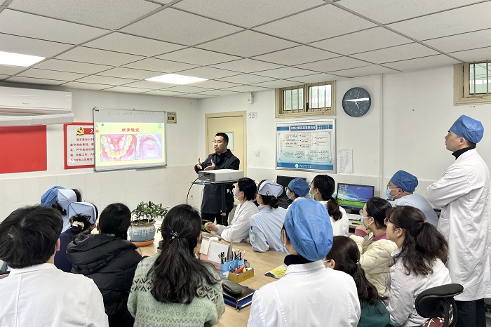 2月24日下午,DB电竞口腔颌面外科在四楼医生办公室开展口腔专业知识标准化培训系列学习讲座。讲座由该科室陈新主任讲授,科室医护人员、实习学生及规培医生等参加。