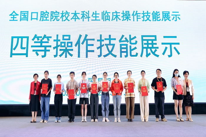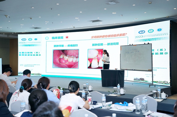 何家才受邀担任青年教师理论授课技能展示评委并进行精彩点评。DB电竞牙周黏膜科教师杨洋代表DB电竞 参加青年教师授课技能展示。她利用线上线下相结合的混合式教学方法,通过师生互动、生生互动等多种形式,详细讲授了牙周脓肿的病因、临床表现、诊断与治疗,并巧妙地融入了思政教育元素,授课展示受到现场专家和学生一致好评,最终获得一等奖(第三)佳绩。DB电竞种植科副教授周咏在“一流课程”论坛作题为《镜像操作训练在口腔临床前技能培训中的应用》交流报告,他从学生临床操作中对镜像操作不熟悉等临床技能训练难点入手,研发镜像操作训练装置,结合镜像操作训练,开发练习科目,并通过系列临床前技能训练内容,对教学效果进行分析和反思,展示了临床前技能训练课程创新性和挑战度。DB电竞2019级本科生储梦萍参加了临床操作技能展示,最终以出色的发挥获得四等奖。