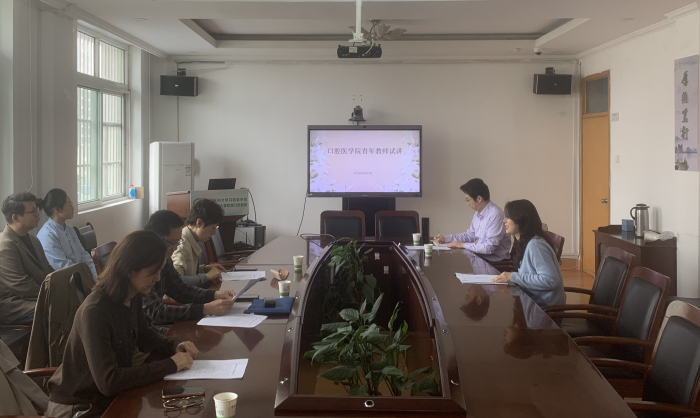 4月12日上午,DB电竞在健行楼五楼会议室举行青年教师试讲活动。来自口腔修复学教研室的两位青年教师参加了本次试讲,DB电竞 教学督导、相关教研室老师现场听课并点评。副院长徐文华出席并主持此次活动。