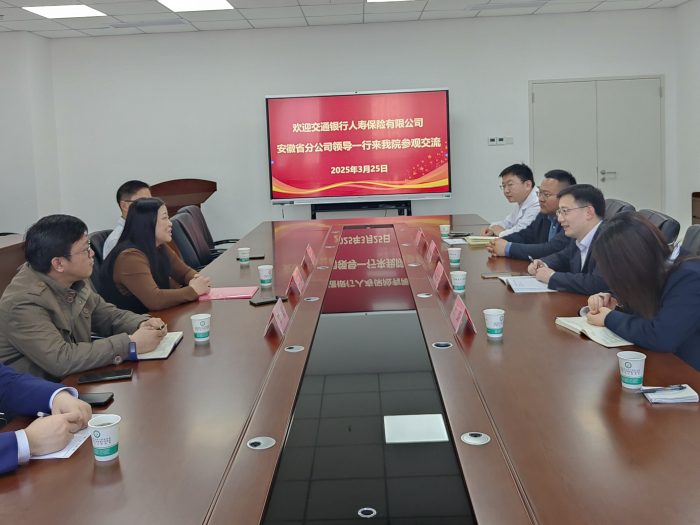 3月25日,交通银行人寿保险有限公司安徽省分公司(以下简称交行人寿安徽省分公司)总经理王冰携管理团队孙喜、罗毅一行到来院调研交流,院总会计师程进松出席座谈会,双方就深化医疗健康与金融服务融合开展交流讨论。