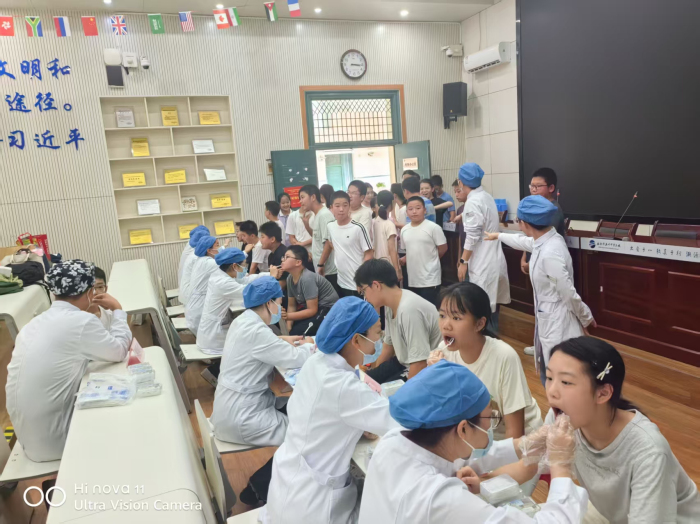 9月17日,第37个 “920 全国爱牙日” 来临之际,医院积极践行社会责任,走进合肥市五十中东校西园校区,开展了一场意义非凡的义诊活动,院党委副书记胡鹏出席活动。