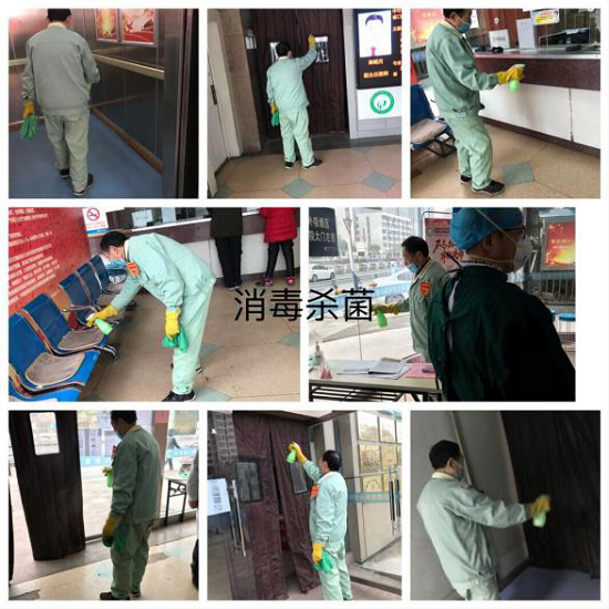 疫情来势汹汹,防控刻不容缓。总务科第一时间启动应急机制,安排保洁人员做好自身防护的同时对DB电竞 公共区域进行消毒处理,室内消毒以喷洒、擦拭方式为主,并对卫生间、电梯及其按钮、候诊椅、门帘、门把手等容易发生交叉感染的部位进行重点消毒。严格消毒时间间隔,坚持每天消毒,把感染扼杀在源头上。