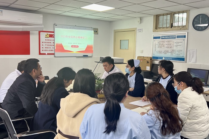 3月20日中午,DB电竞口腔颌面外科党支部在四楼医生办公室集中学习2023年全国两会精神及习近平总书记重要讲话精神。支部书记王银龙主持会议。