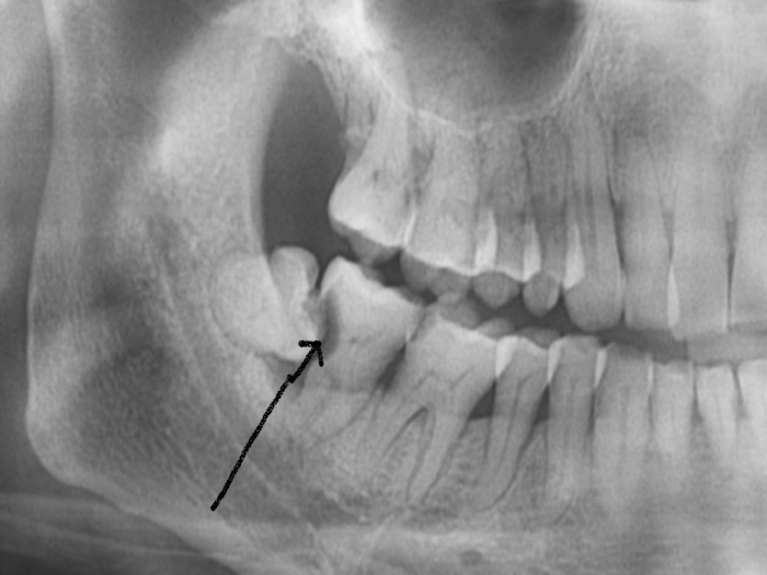 智齿在作怪。智齿是最容易塞的一颗牙了,因为大多数人智齿长得都不正,别的牙都是从下往上竖着长,可智齿经常从后往前横着长,于是它跟前面的牙之间就出现了一道楔形的沟,这样就极其容易塞牙。