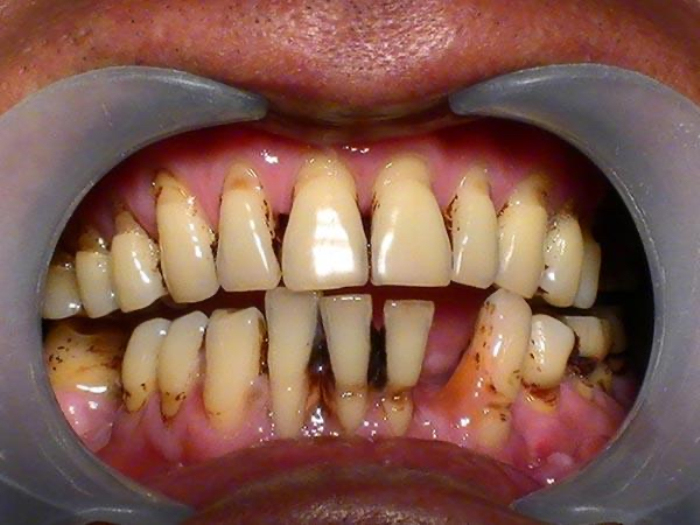 不注意口腔卫生,食物残渣产生的毒素就会慢慢地刺激牙龈发炎,频繁发炎的牙龈又会刺激到牙槽骨,发炎的牙槽骨慢慢吸收,变得越来越低,包裹它的牙龈也慢慢萎缩,这样暴露在外面的牙根就会越来越多,牙齿就会慢慢松动。也许最开始发现不了,但是当你用力咀嚼食物是会发现上下牙往一起用力时,松动的牙齿被推开一道缝,塞牙就会发生了。