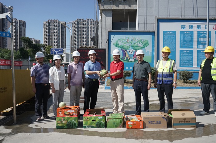 梁朝朝代表校党委、行政向新院区建设驻场工作人员、各参建单位以及一线工程建设者致以亲切的慰问,对他们坚守岗位、为新院区建设的辛苦付出表示感谢,并为大家送去了水果、饮料、营养品等慰问物品。他叮嘱各参建单位要把安全工作放在首位,时刻筑牢安全意识,合理安排作业时间,进行人性化管理,严格执行各项施工规范,在保障安全和质量的前提下,健康顺利地推进施工进度。