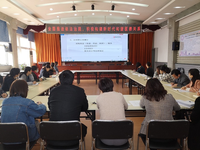 郝律师主要从全面依法治国到依法治院、透过医疗案件分析依法治院两大方面进行了详细讲解,讲述了全面依法治国的意义,重点分析了依法治院的关节环节和重要法律法规,同时,他还针对社会热点问题,如医疗纠纷诉讼、医疗事故鉴定、医院合同签订及劳动人事合同遇到的相关问题结合实际医疗案件和法律知识进行了讲解。