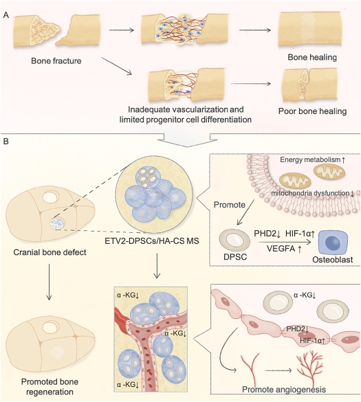 近日,DB电竞徐建光副教授、王元银教授联合首都医科大学周建教授课题组,在《生物活性材料(Bioactive Materials)》(IF=18.9)发表题为《ETV2调节PHD2-HIF-1α轴控制代谢重编程促进血管化骨再生(ETV2 regulating PHD2-HIF-1α axis controls metabolism reprogramming promotes vascularized bone regeneration)》的学术论文。
