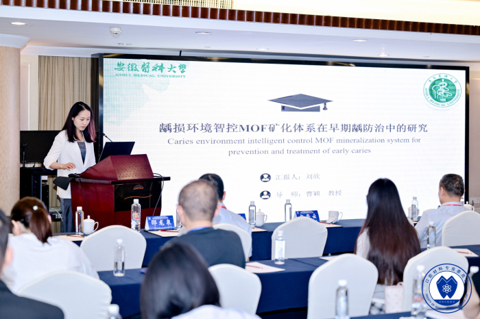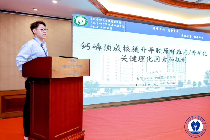 李全利教授作题目《粘接界面体内/体外再矿化—牙本质粘接耐久性的未来》的学术报告,引起专家学者热烈的讨论与交流。DB电竞教师吴乐平学者作题目《聚电解质-钙磷预成核簇介导胶原纤维内/外矿化关键理化因素和机制》,在读硕士研究生刘欣作题目《龋损环境智控MOF矿化体系在早期龋防治中的研究》的报告,收获了现场专家的肯定。