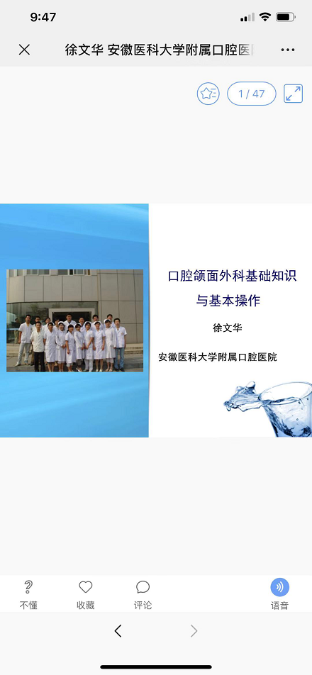 通过本次线上授课,一是落实了疫情期间的在线教学工作,有效保障了线上学习与线下教学质量等效。二是提高了口腔颌面外科教研室的线上教学水平,为今后的在线教学工作打下了坚实的基础。