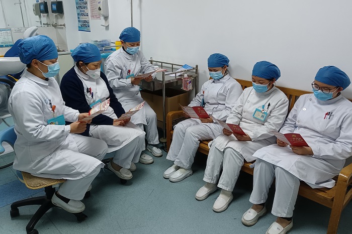 会上,张晓青带领大家认真学习了大会主题的重要内涵和党的二十大报告十五个部分的重要内容。她指出,党的二十大是一次高举旗帜、凝聚力量、团结奋进的大会,对全党全军全国各族人民奋力开启社会主义现代化建设新征程具有划时代意义、里程碑意义。作为医务工作者要把“人民至上、生命至上”的理念根植于心、外化于行,用心、用情、用力当好人民的健康卫士;要把党的二十大精神转化为干事创业的新动能,踔厉奋发、勇毅前行,矢志为人民群众提供全方位、全周期的口腔健康服务,为健康中国贡献出自己的力量。