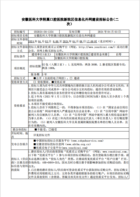 DB电竞 新院区信息化外网建设招标公告(二次)