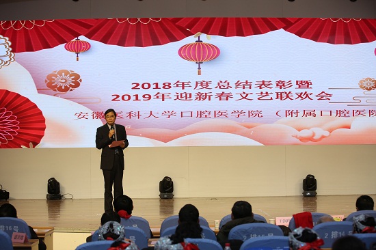 院党委书记王润玲主持2018年度总结表彰大会,院长何家才代表附属口腔医院致新春贺词,回顾医院过去一年取得的成绩,对新的一年寄予美好希望。