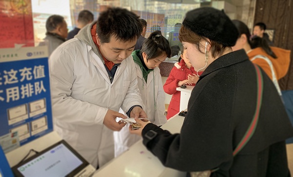 进行导诊活动。同学们站在导诊台前,疏导前来就诊的患者,在自助机前帮助患者及家属进行充值、挂号等服务,并耐心答疑解惑。一张张热情认真的面孔为医院营造了文明有序的就医氛围,提高了就诊效率,彰显出学子们勤于助人、乐于奉献的良好精神风貌。