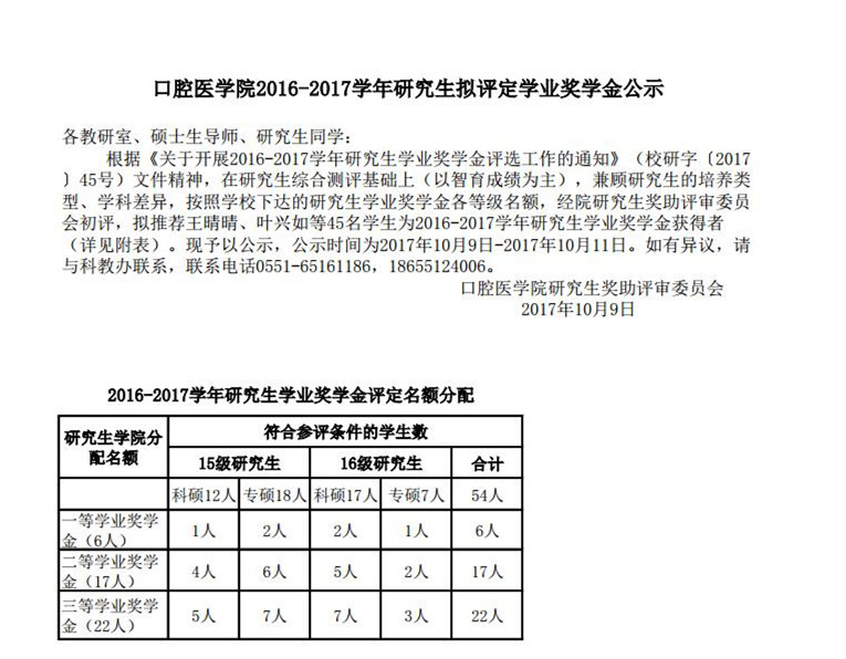 拟推荐2017年研究生国家奖学金公示