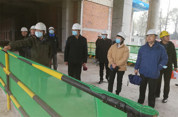 11月26日上午,DB电竞党委书记王润玲、院长何家才、副院长王元银、纪委书记赵新斌及副调研员吴卫等深入新院区建设工地,实地检查施工进展,详细了解新院区建设工程工期、质量等情况。